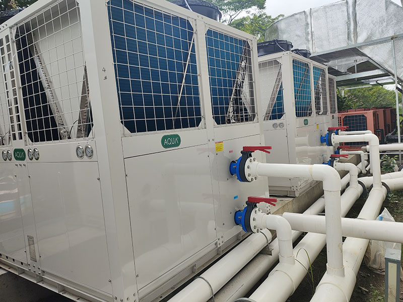 AQUA小猪视频免费下载高清空气源小猪视频在线观看下载免费污恒温热泵只需消耗少量电能,就能驱动压缩机运作,将空气中源源不断的免费热能吸收、压缩、升温,然后转化为可利用的高品位热能释放到池水中,制热快、无污染、耗电少、更稳定,并且智能控温不会忽冷忽热,一年四季保证池水恒温舒适,全面提升了佛山某中学师生游泳体验。